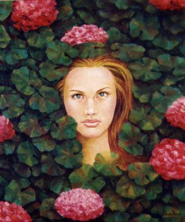 ROSTRO ENTRE GERANIOS