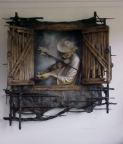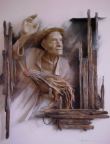 Manuel Arjona Leonardi, trabaja con una t�cnica de papel de su propia invenci�n (antes lo hizo con madera y cabuya) este material seg�n